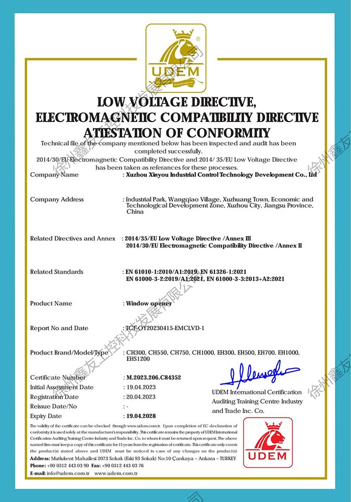 徐州鑫友工控科技發(fā)展有限公司成立于2008年,占地31600平方米,全資子公司:江蘇良紫工程科技有限公司,旗下 有“鑫友”及“MASTER.W主人窗控”兩個品牌系列,公司全面貫徹執(zhí)行IS09001:2015質(zhì)量管理體系標(biāo)準(zhǔn),產(chǎn)品順利通過歐盟CE認(rèn)證和中國***消防電子產(chǎn)品認(rèn)證,通過可燃性粉塵環(huán)境下、爆炸性環(huán)境下防爆合格產(chǎn)品檢驗。排煙天窗整窗通過***消防產(chǎn)品質(zhì)量監(jiān)督檢驗中心檢測。先后獲得多項******及榮譽(yù)證書。集研發(fā)、加工、生產(chǎn)、制造、銷售、安裝及售后于一體,是一家高起點(diǎn)、研發(fā)能力強(qiáng)的專業(yè)智能化***技術(shù)企業(yè)。